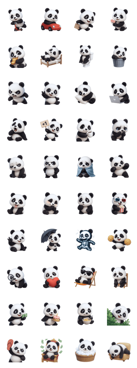 | スタンプ説明 | かわいいパンダのスタンプ、 面白い動物、 面白い顔のパンダ、 ぽっちゃりでかわいいパンダ、 無言スタンプ、 セリフなしスタンプ |