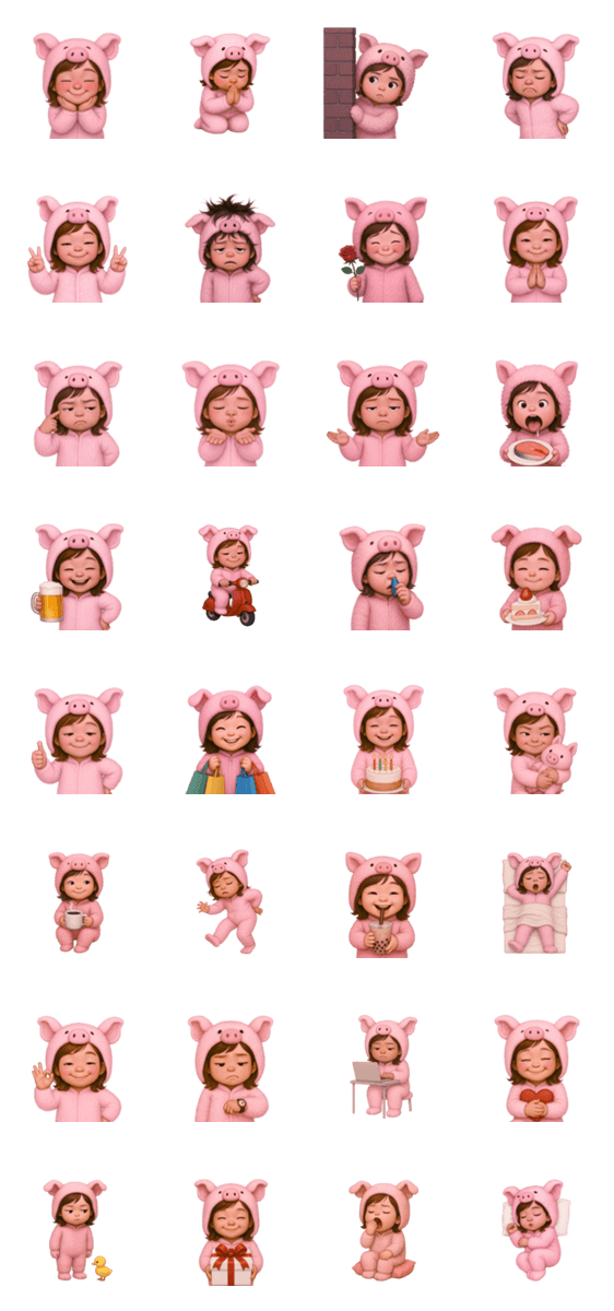 | スタンプ説明 | Nong Mina in a piggy costume (No text) |