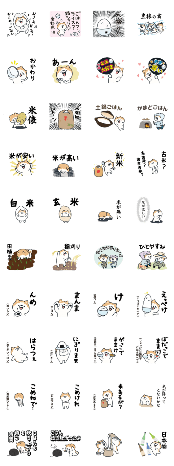 ごはん(お米)が大好きな秋田犬のスタンプです。 お米の推し活から白米・玄米・古米、色んなごはんをアピールをします。 秋田弁でお米も語ります。