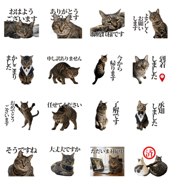 元ガチ野良猫プロの紳士なスタンプ Vol.1 無敗だった野良猫時代を経て、今は礼儀正しい紳士猫。挨拶・感謝・謝罪など、ビジネスにも日常にも使える便利なスタンプです。