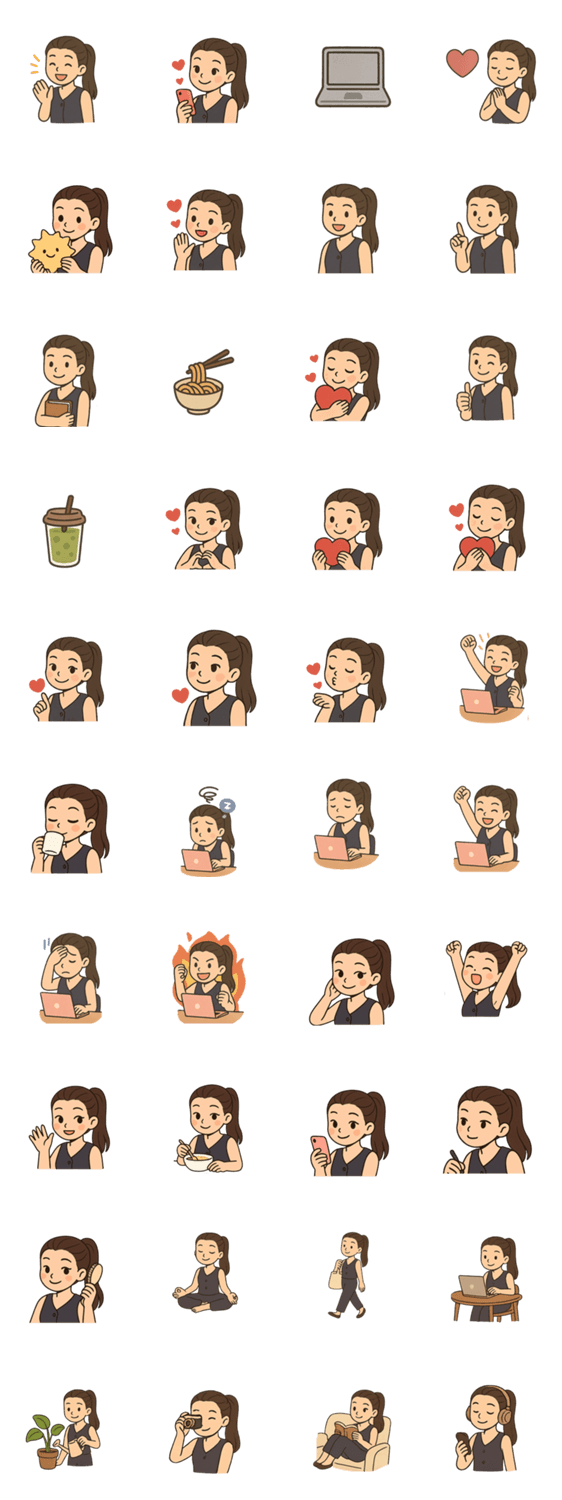 Cute working woman stickers for every workday mood and chat.