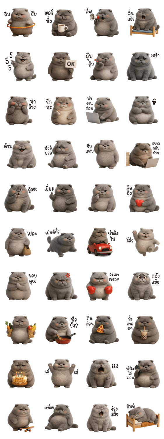 Big chubby grey cat tuatung -LINEスタンプマニア
