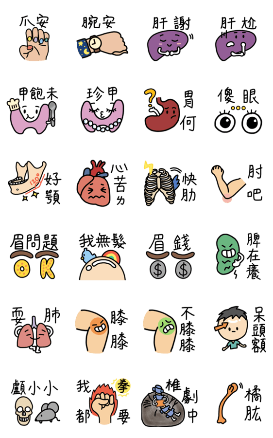 Meet the funniest side of your body! This sticker pack turns human organs into playful puns, perfect for adding humor and heart to your chats!