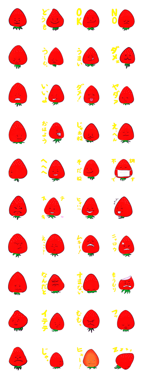 いちごのキャラクター、いちびこちゃんのスタンプです。どうぞよろしく。