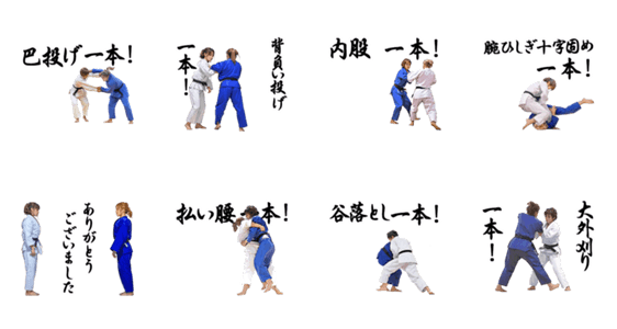 | スタンプ説明 | リアルアニメタッチのリアルに動く柔道女子スタンプ「一本」シリーズです。巴投げ、背負い投げ、内股、払い腰から腕ひしぎ十字固めアリ!「一本」とりたい柔道家へ! |