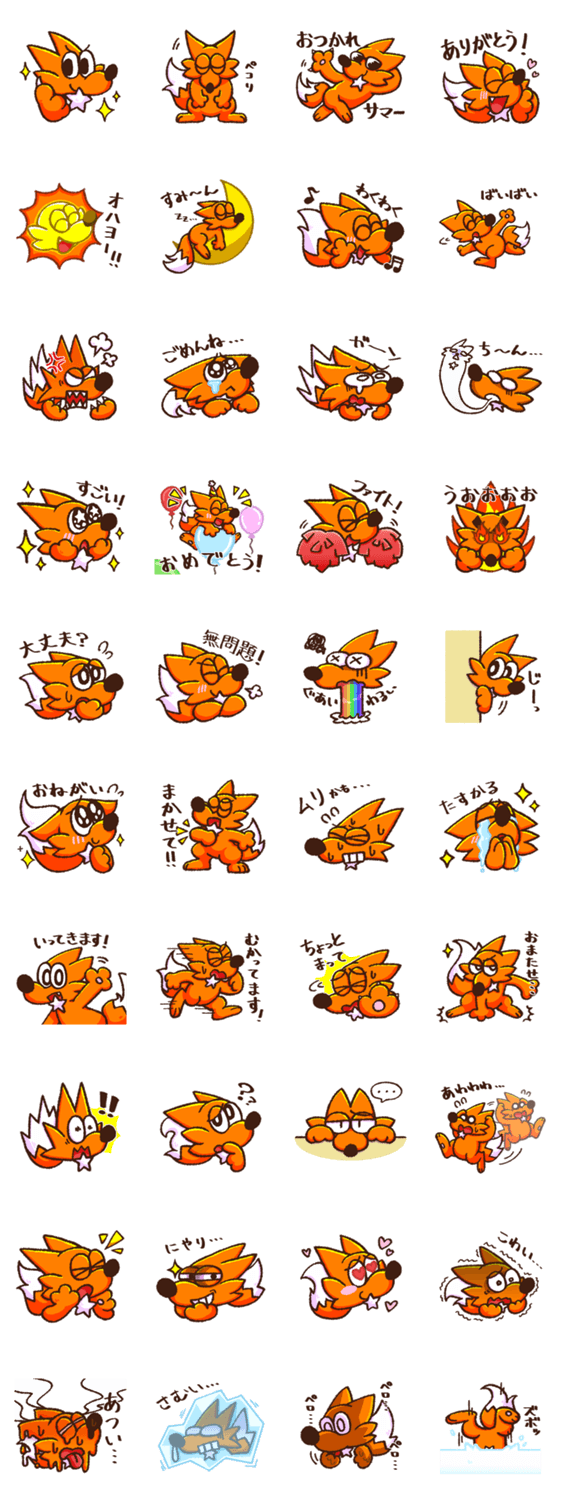 きつねっぽい不思議生物、あぶらげくんのLINEスタンプです。
