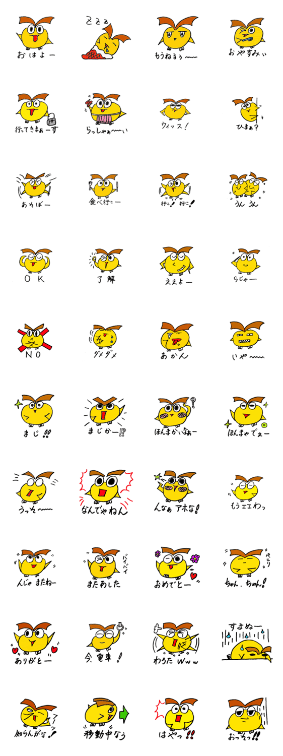 幸福を呼ぶフクロウの"フクちゃん"キャラクターが贈る、LINEで頻繁に使う日常会話のひとこと。