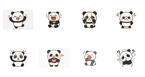文字なしで感情豊かなパンダのスタンプです。喜怒哀楽を表情とポーズで表現し、どんなシーンでも使いやすいデザインになっています