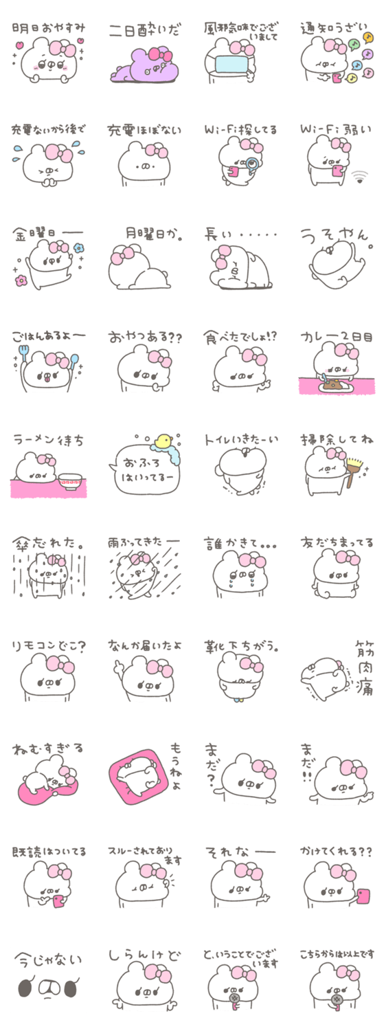 白ネコのあいうえお・・・ってるスタンプ