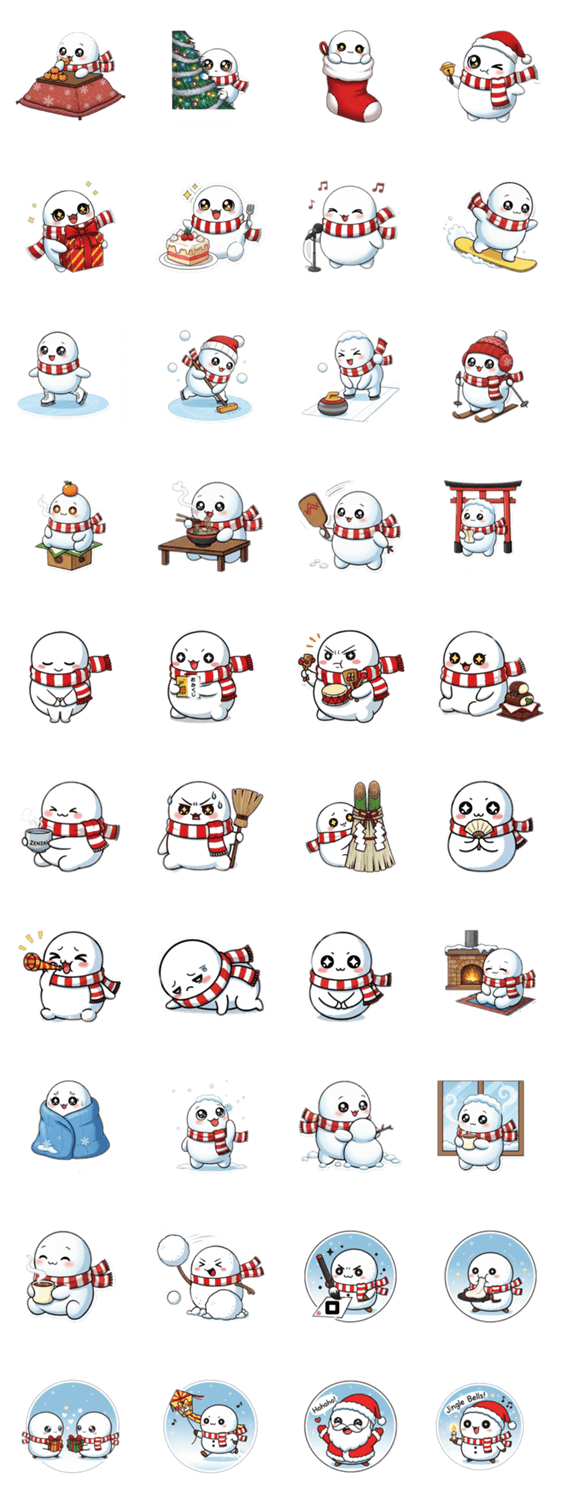 | スタンプ説明 | 冬の日常挨拶&リアクションたっぷり!クリスマスからお正月(年末年始)までずっと使える雪玉キャラクターです。可愛い表情で会話を盛り上げよう✨ |
