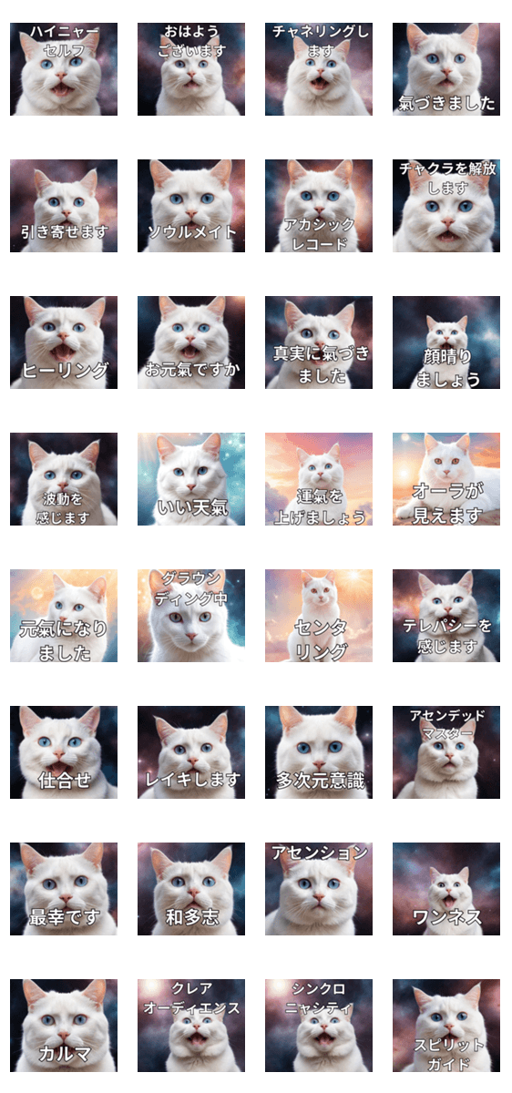 白ネコのあいうえお・・・ってるスタンプ