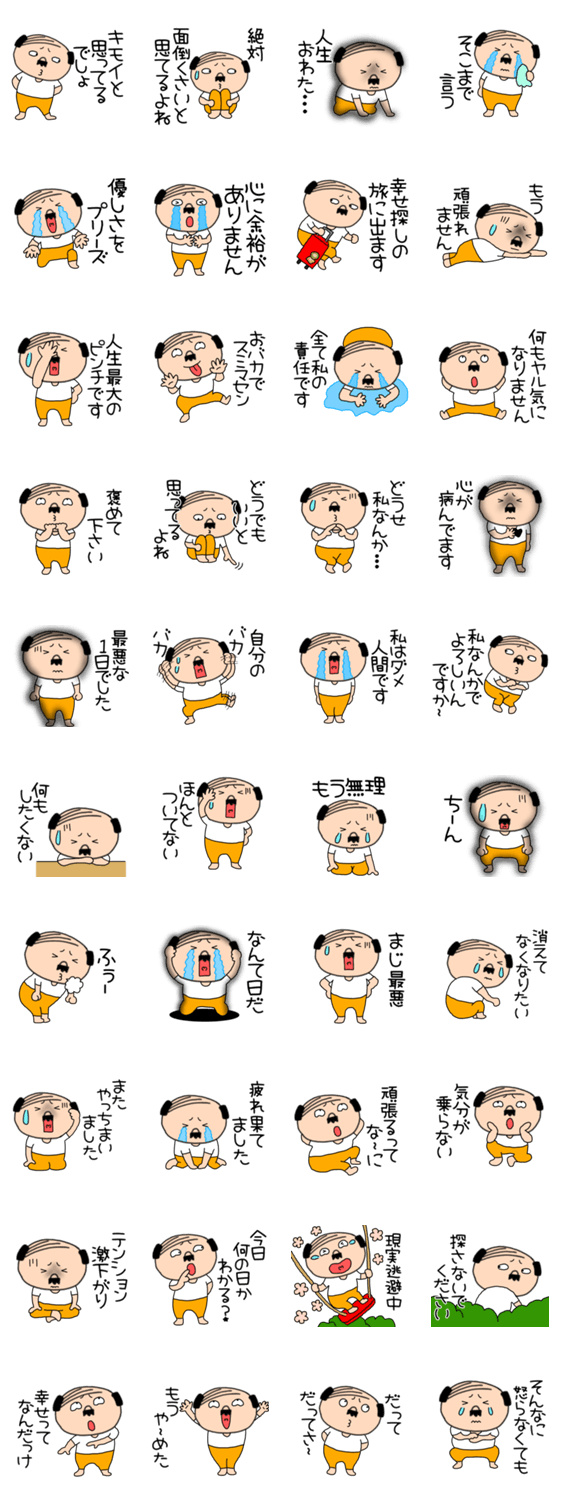 以外と使えるブサ可愛いオジサンのネガティブスタンプです