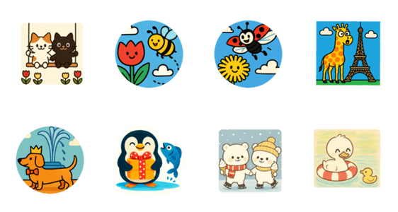 動物をメインとしています。様々なシーンで活用できる、LINEスタンプメーカーでつくったスタンプです。