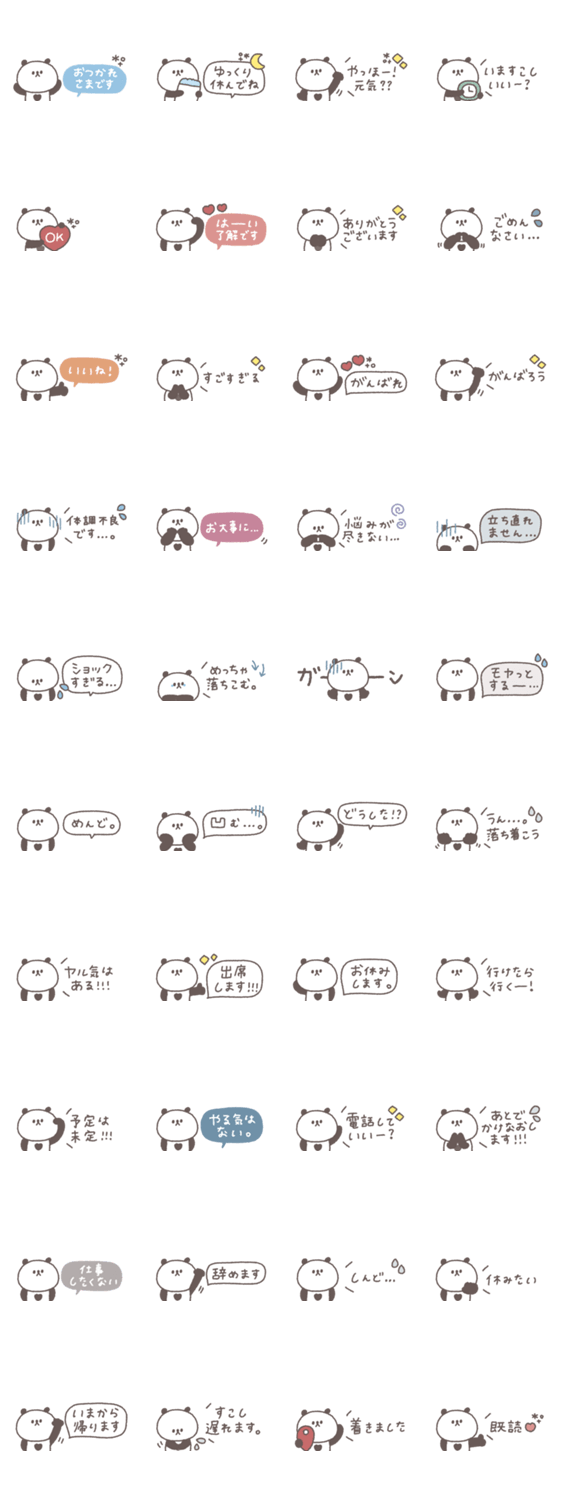 一つあると便利な小さくてかわいいぱんだのスタンプです。 パンダ/大人可愛い/シンプル/あいさつ/吹き出し/くすみカラー/無気力/ネガティブ