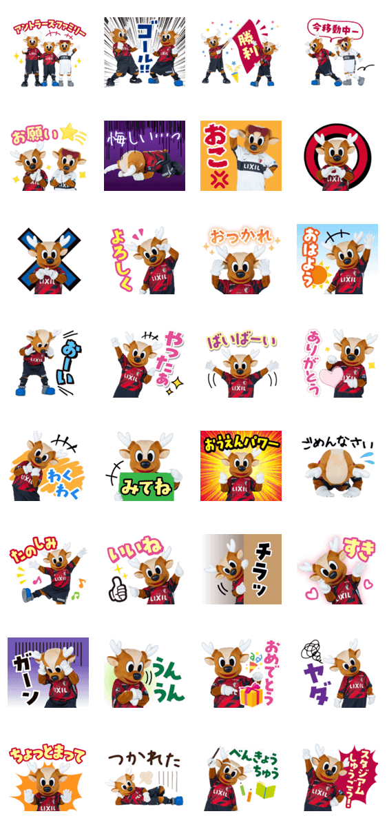 | スタンプ説明 | 鹿島アントラーズのマスコット「アントン」がLINEスタンプになったよ!試合観戦の応援から日常の挨拶まで、スタンプが盛りだくさん!しかお父さんとしかこ母さんも登場! |