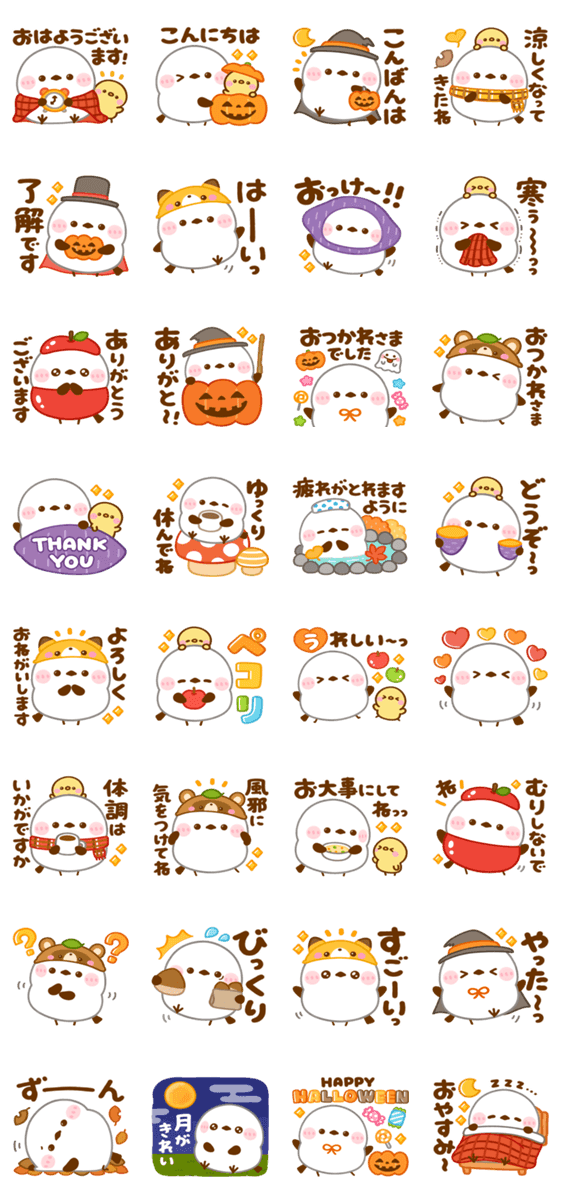 秋に使える♡シマエナガのスタンプです。相手を気遣う言葉もいっぱい♪ハロウィンにも♪