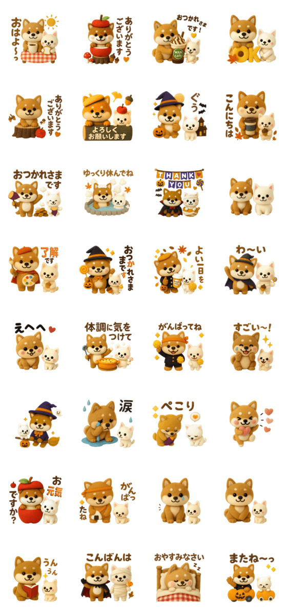 かわいい犬たち 秋 柴犬 フエルト -LINEスタンプマニア