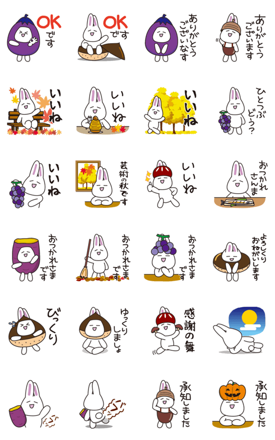 白ウサギの秋を感じるスタンプ -LINEスタンプマニア