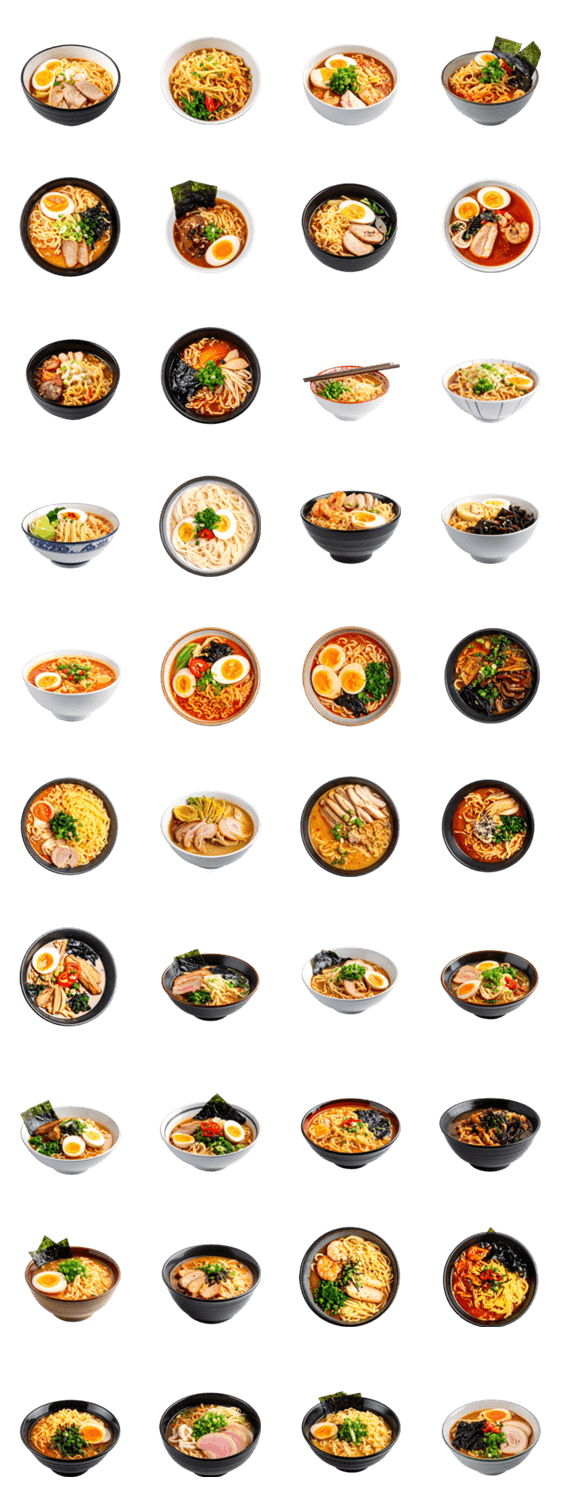 食べ物 麺類 しょうゆ みそ しお とんこつ チャーシュー ネギ 卵 中華 料理 グルメ 美味しい 熱々 湯気 醤油 味噌 塩 スープ 実写 スタンプ 素材 人気 かわいい 面白い