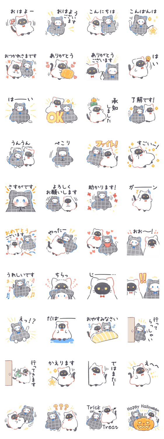 シーツをかぶった、かわいいお化けネコのスタンプ。 丁寧な敬語で、仕事や日常のあいさつにも使いやすい! ゆるく、やさしい柔らかいタッチで気持ちが伝わるスタンプです!