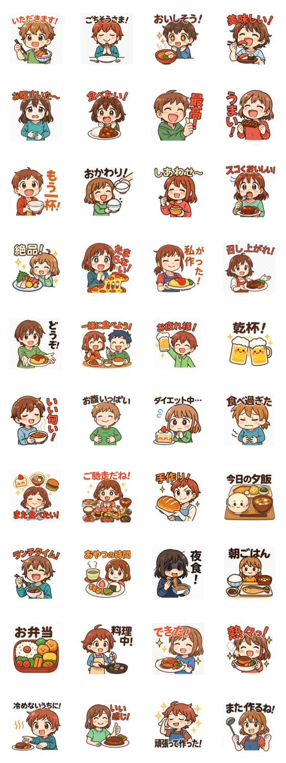 おいしそうで楽しい!料理好きにぴったりのスタンプです。