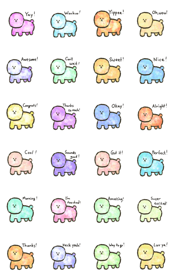 Dengdeng is a small and cute dog character. I expressed happiness with bright colors. This is an emoticon used to exchange warm messages with friends.