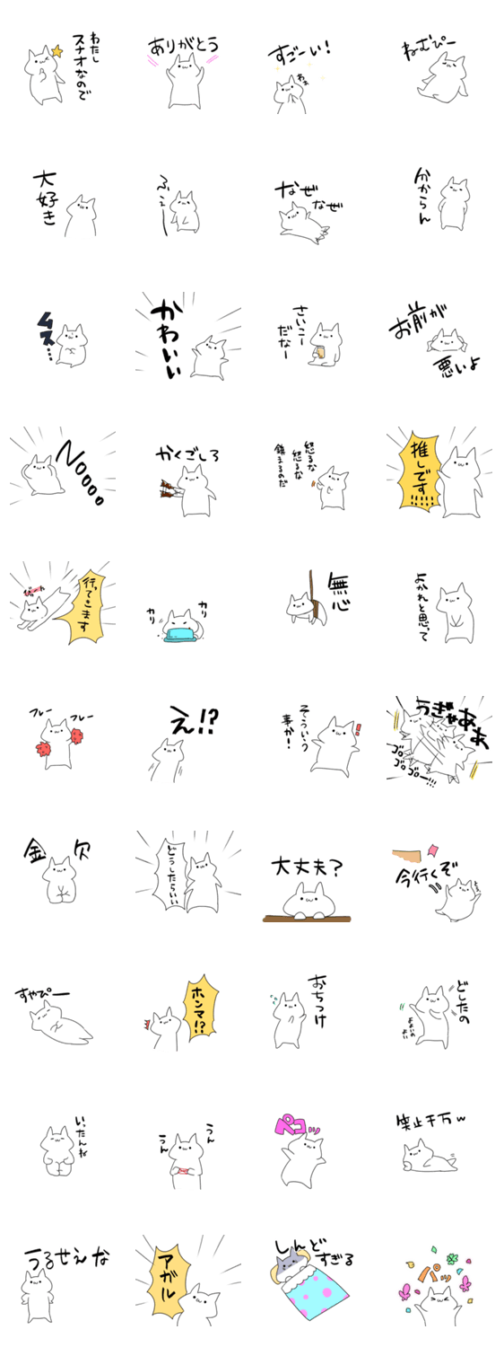 白ネコのあいうえお・・・ってるスタンプ