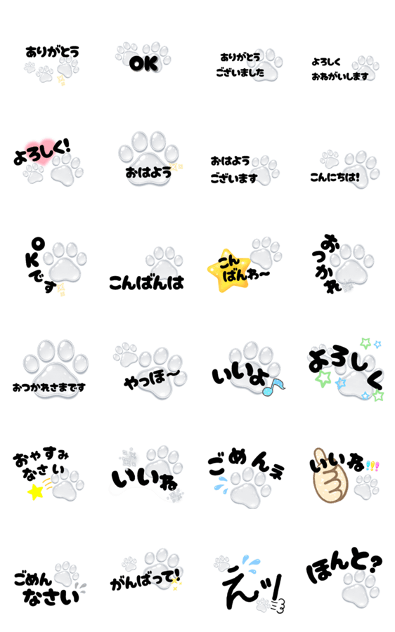 スタンプ説明 ぷくぷくかわいい★肉球ドロップシール風スタンプ
