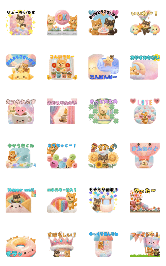 | スタンプ説明 | ふわふわもこもこの柴犬と、やさしいパステル小物がふんわり動くアニメーションスタンプ♡ 毎日のあいさつやメッセージ、応援や癒しの気持ちを伝えるのにぴったり! |