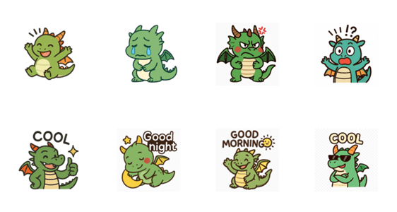 ドラゴンがあなたの気持ちを届けます。かわいくて癒される、毎日使えるスタンプです。