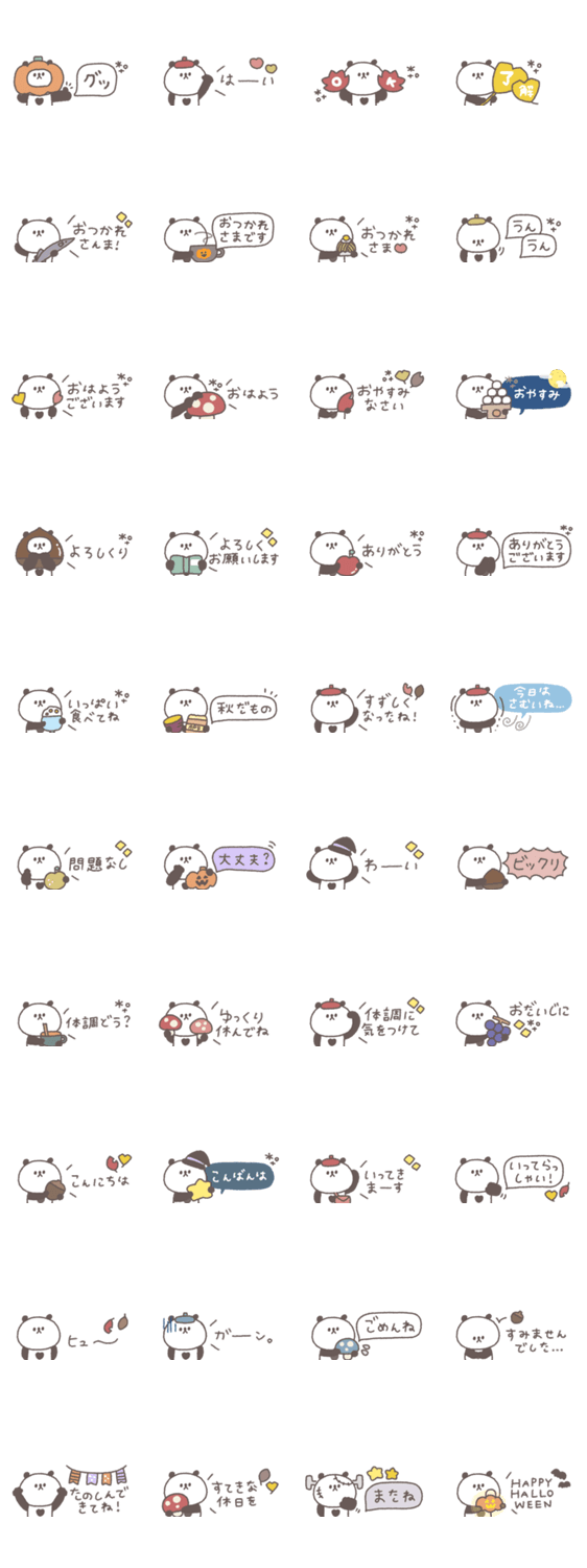 一つあると便利な小さくてかわいいぱんだのスタンプです。 パンダ/大人可愛い/シンプル/あいさつ/吹き出し/くすみカラー/秋/ハロウィン/省スペース
