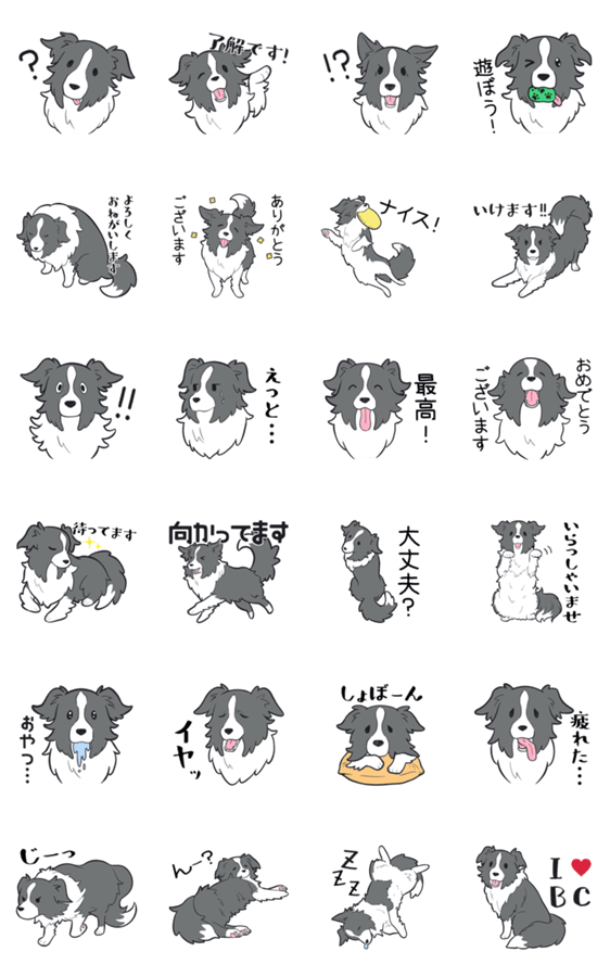 折れ耳ボーダーコリーのスタンプです モデル協力/なたねちゃん