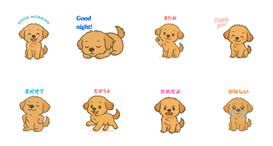 Adorable Golden Retriever puppy stickers! Share love, joy, and fun with these fluffy expressions and playful poses for every chat.