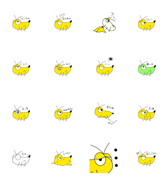 不思議で癖になる愛らしいバナナモチーフのバッタを日常のクスッとできるキャラクターとして作成しました!
