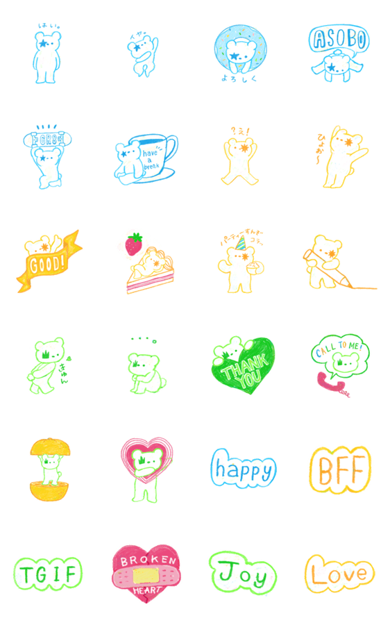 | スタンプ説明 | 3BEAR BROTHERS のmultiverse -cute- のスタンプです。 オイルパステル風のかわいいイラストです |