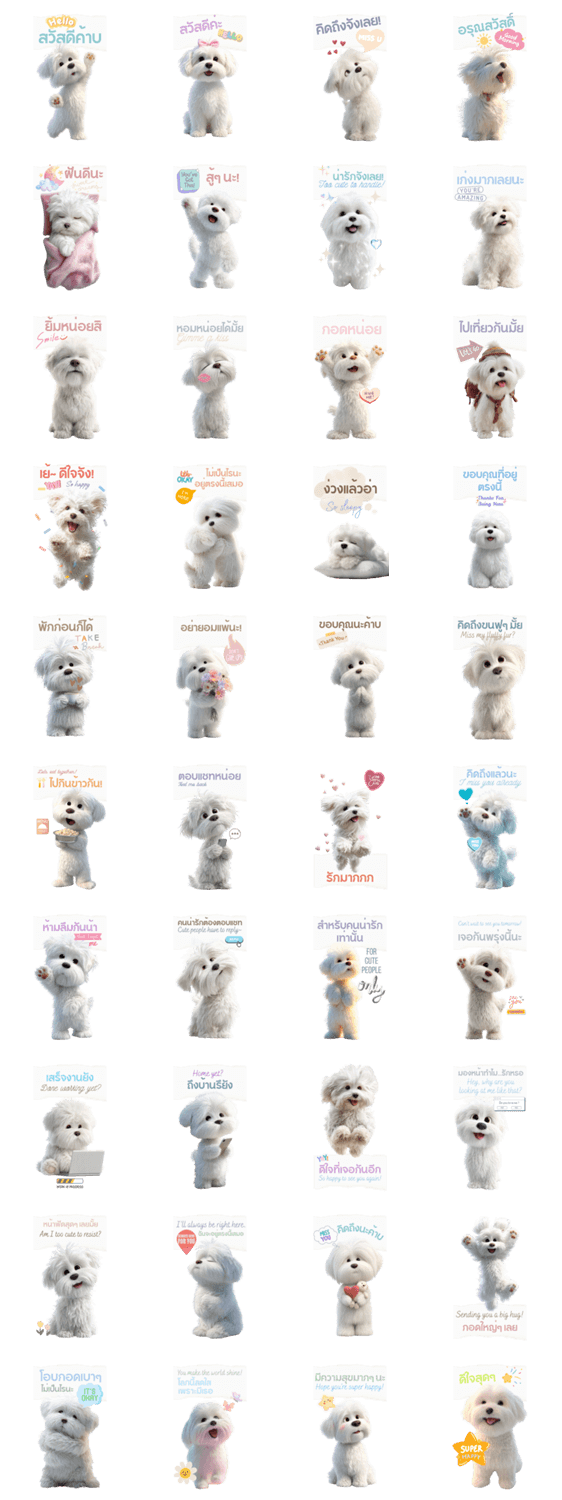 Adorable fluffy Maltese dogs sharing love, hugs, and smiles to make every chat warm and happy! These stickers will show up extra large in chats.