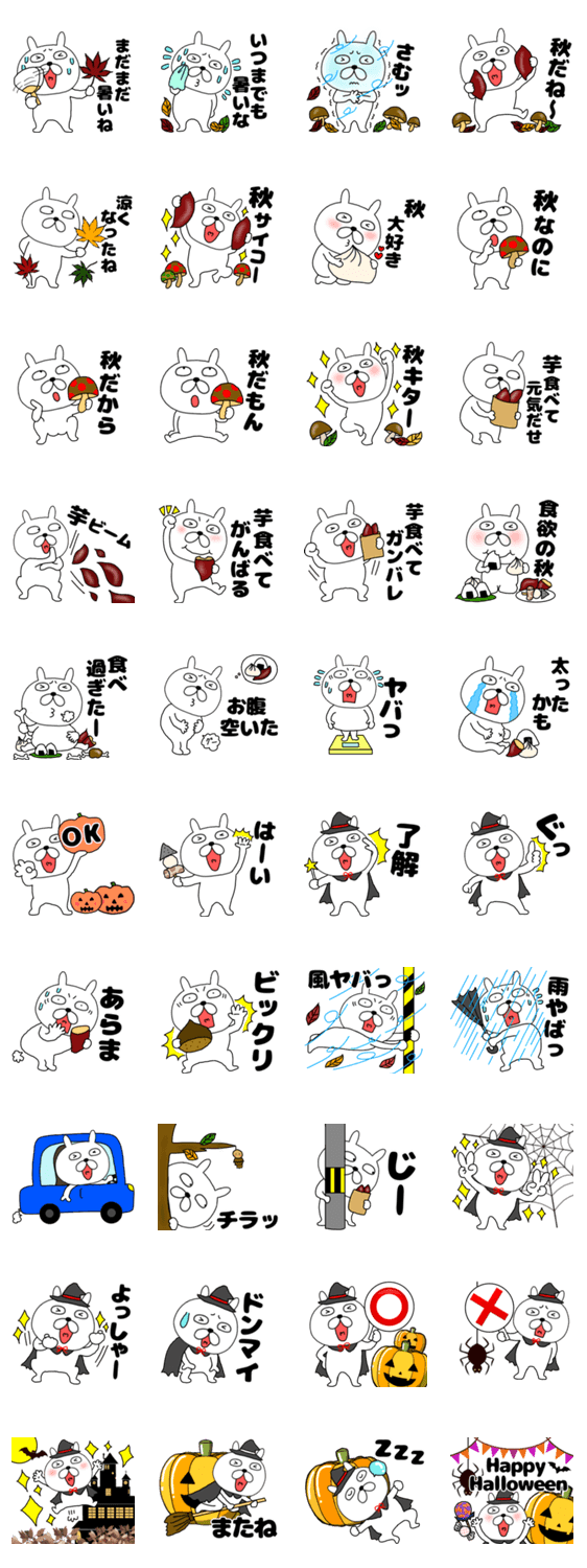 ハロウィンスタンプ入り 毎日使えるブサ可愛いウサギの秋を感じるスタンプです
