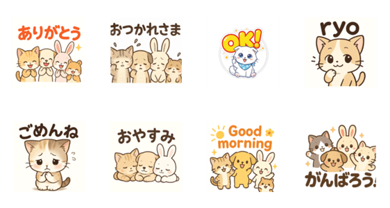 トークをほっこりさせよう!かわいい動物たちが日常会話を彩ります。感謝や挨拶、様々な気持ちを伝えるのにぴったり。癒やしと楽しさをメッセージにプラス!