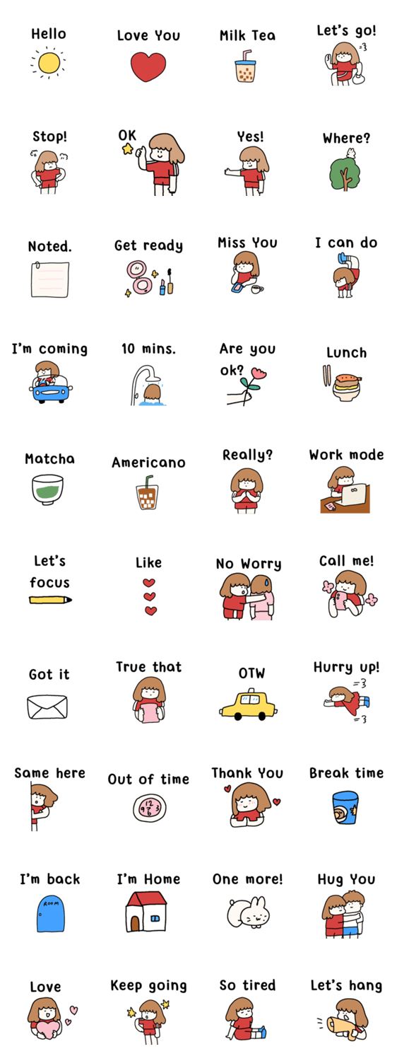 Lovely girl stickers full of love and sweet emotions. Perfect for sharing your romantic mood in chats.