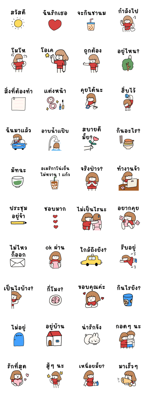 Lovely girl stickers full of love and sweet emotions. Perfect for sharing your romantic mood in chats.