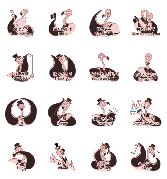 ゆるっと紳士のフラミンゴの日常スタンプ。