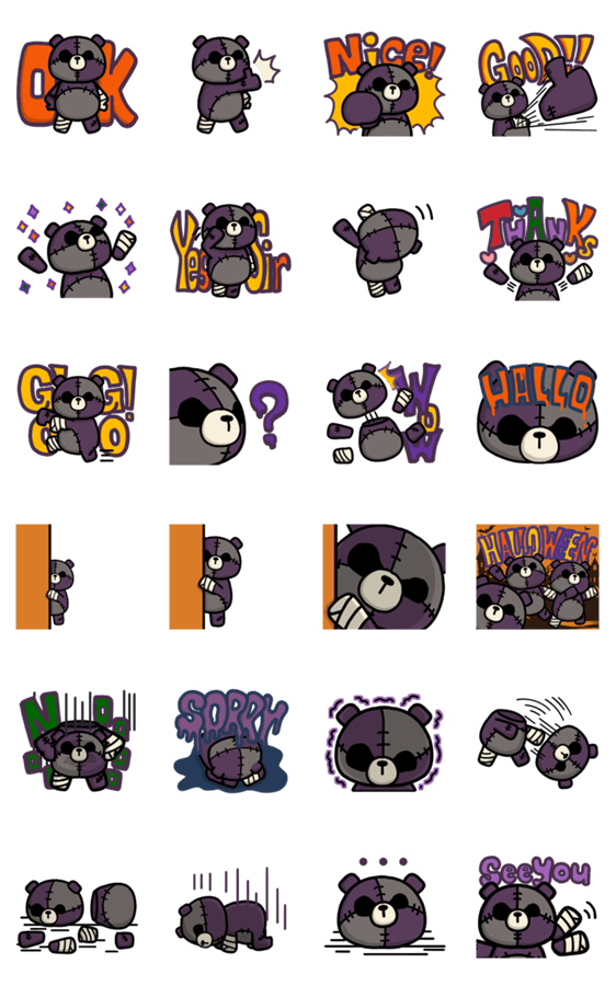 ハロウィンにぴったり!ちょっとホラーなくまのキャラクターです。文字も英語なので海外の友達にも使いやすいスタンプです。 #くま #英語 #ハロウィン #秋 #可愛い #ホラー