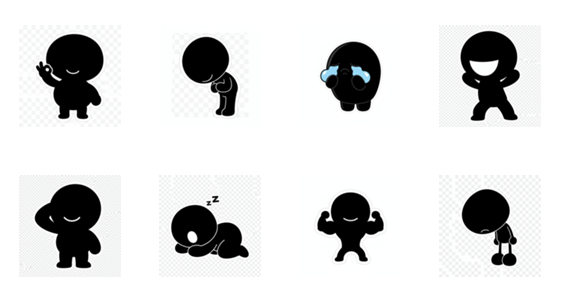 目鼻のない頭でっかちな黒い棒人間スタンプ!OK、ありがとう、ごめんなど日常で使える8種セット。シンプルで愛らしい。