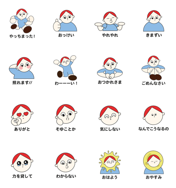 OOくんのスタンプが登場! 見ているだけでクスッと笑顔になれる、愛らしい男の子です。
