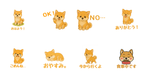 かわいい柴犬で気持ちを伝えよう!「おはよう」から「ごめんね」まで、毎日のトークにぴったり