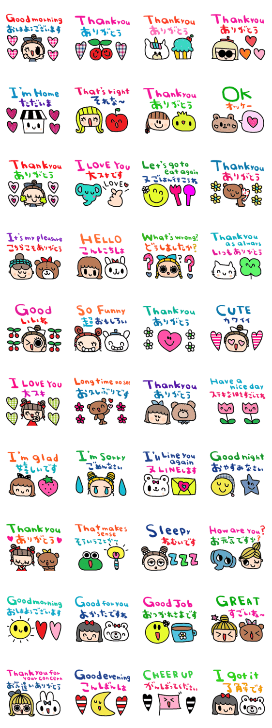 シンプルな日常会話スタンプです。お気遣いスタンプ 日本語英語スタンプ
