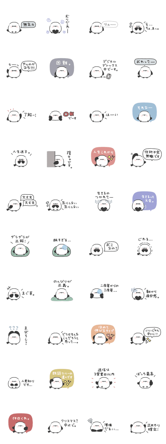 一つあると便利なかわいいシマエナガのスタンプです。 シマエナガ/大人可愛い/シンプル/あいさつ/吹き出し/毎日使える/無気力/ネガティブ