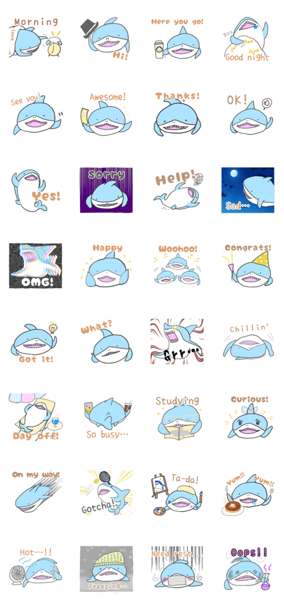 This is a sticker set featuring Same-chan the shark! It’s full of cute and relaxed shark illustrations.