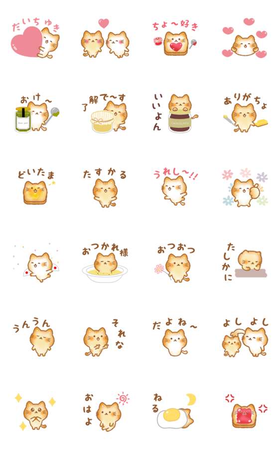 仲良し、親しい人に送るスタンプです。楽しい・ハッピー・肯定的な言葉を集めました。猫/ネコ/ぱん/使いやすい/毎日/日常