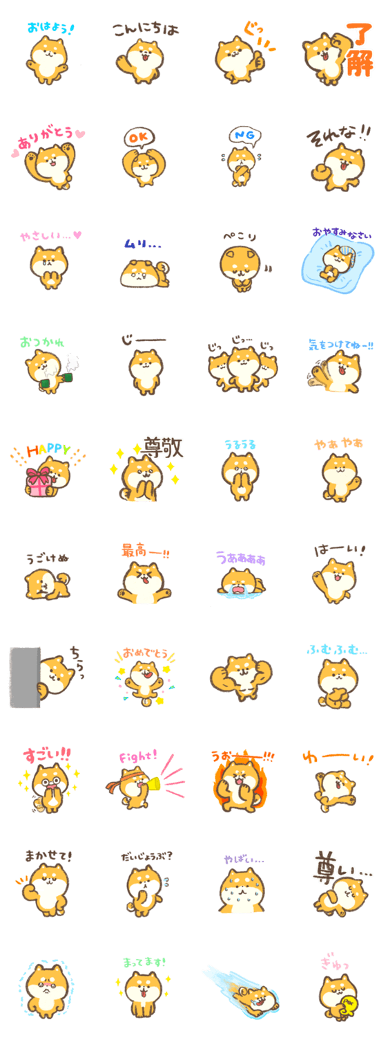 かわいらしい柴犬が毎日の気持ちをほっこり届けます。 「おはよう」「ありがとう」「おつかれさま」など日常で使いやすい言葉がいっぱい。癒されながらトークを楽しんでね